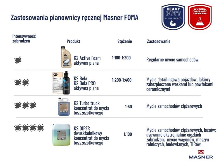 MASNER FOMA je profesionalna ručna prskalica za penu pod pritiskom dizajnirana za primena sredstava za penjenje. Karakteriše ga visoka hemijska otpornost, čvrsta konstrukcija i visoka udobnost upotrebe.